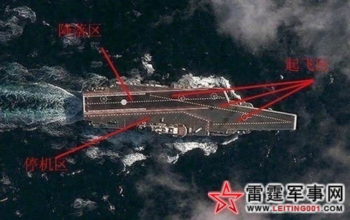 瓦舰的载机示意较,可见舰岛前6架无法通过自己的动力滑向直飞线